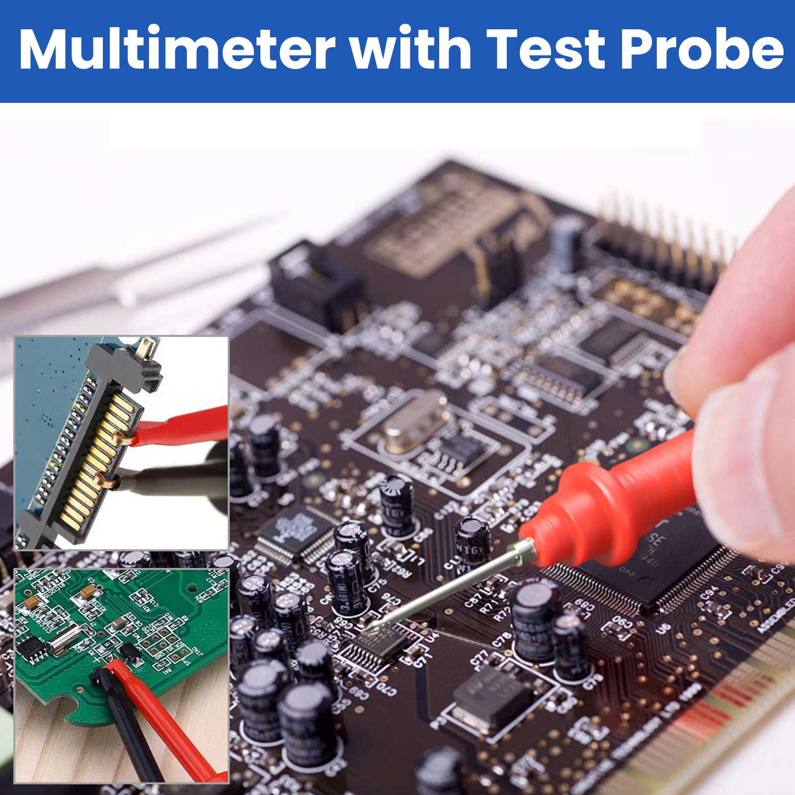 OK▼Multimeter Universal Test Kit -Universal compatible kits,with three different connectors that can be replaced: alligator clips,gold/silver-plated probes and test hooks,meet different test needs.Constructed high quality of flexible PVC/PA materials,ensures that the test leads are durable,flexible as well as having properties like freeze resistance and heat tolerance.