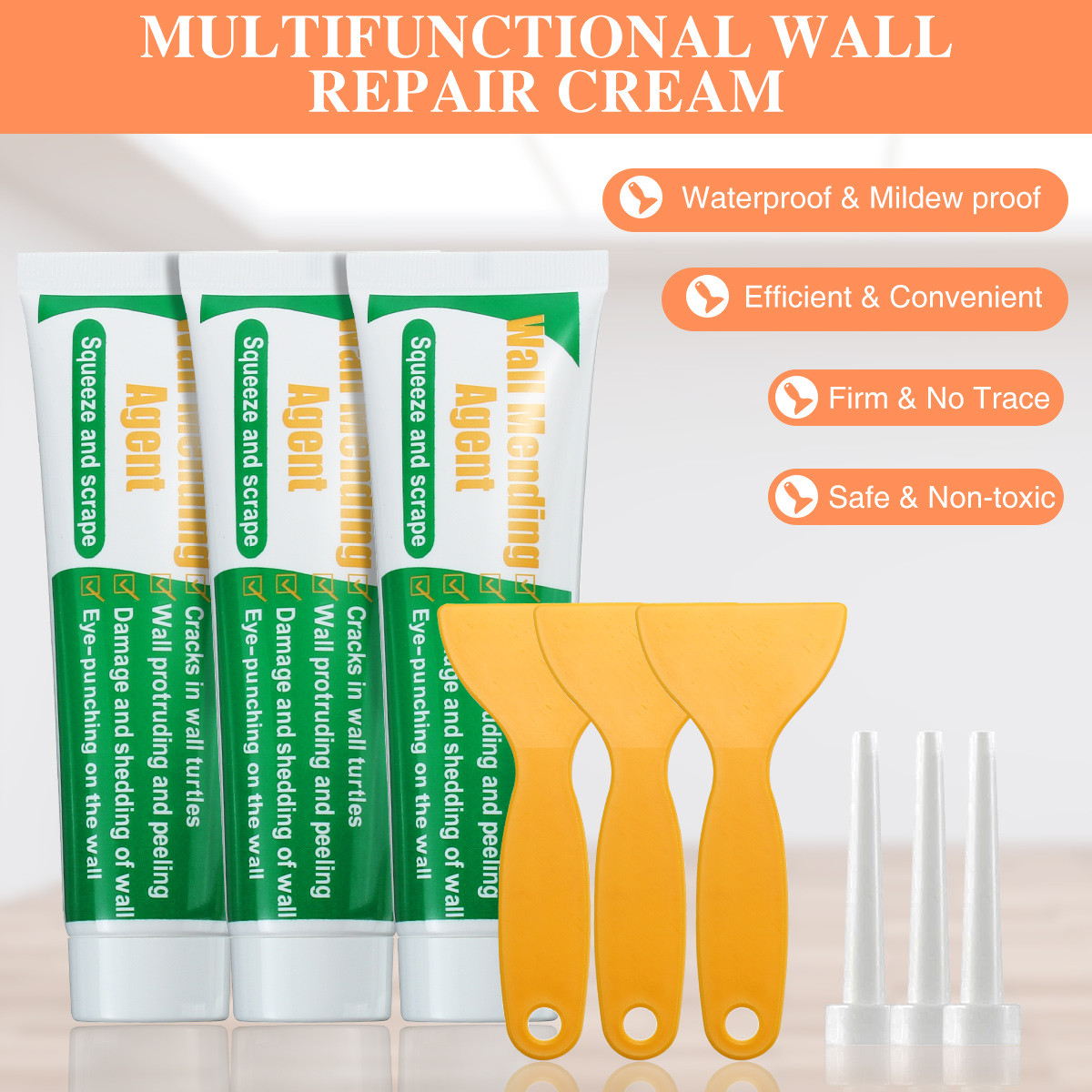 After Sale Service - You will get 3 x 100g safe mend wall repair, 3 x scraper, 3 x nozzle extender. We are aim to provide the best to the customer. If there is any problem, please let us know, we'll solve your confused and give you a satisfied solution within 24 hours.
